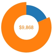 The label in the ring center displays the total amount when there's no hover over. When mouse hovers over to one slice, the center label text changes to that slice's corresponding amount and color.